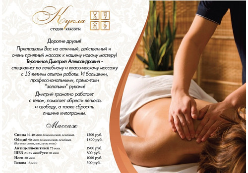 Приглашаем Вас на отличный, действенный и очень приятный массаж к нашему мастеру с 13-летним опытом работы